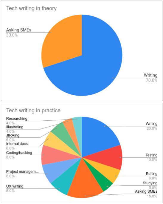 The second misconception you’ve to get rid of is that the main job of a tech writer is writing. It isn’t. Tech writers organize content, test features, manage projects, edit existing documentation, do front-end development, investigate and fix the search engine on your site, and more. Everything that surrounds documentation is in tech writing territory.