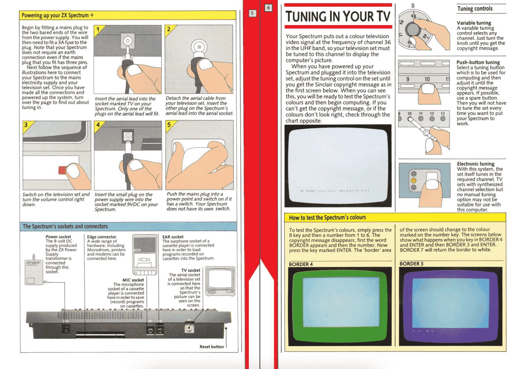 The ZX Spectrum User Guide (1984) is a colourful, tail-wagging joy of a book that guides newbies with highly visual instructions.